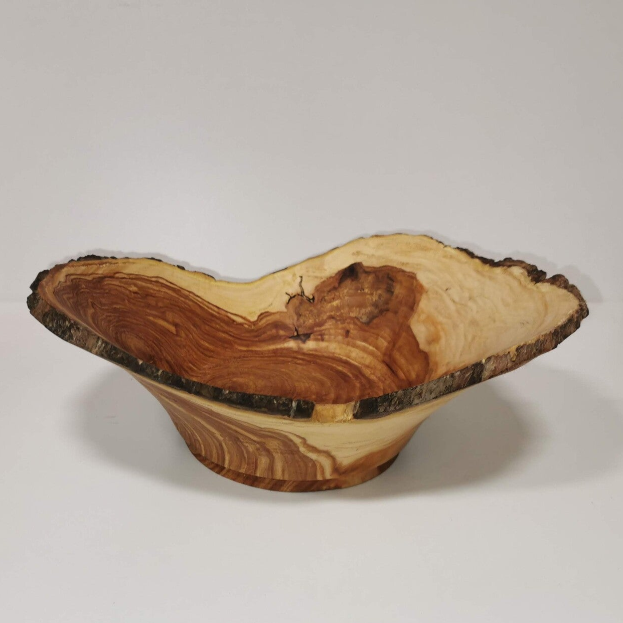 Die Schale wurde aus dem Stammholz eines Apfelbaumes gefertigt und gibt das gesamte Bild des Baumes, vom Kern bis zur Borke wieder